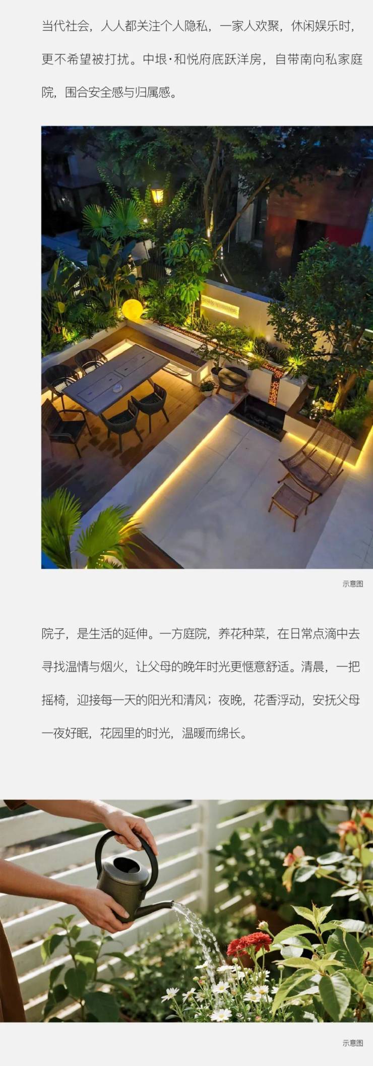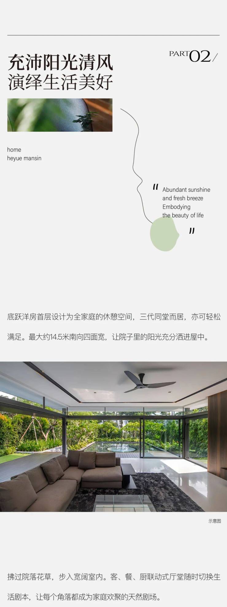 中垠·和悦府底跃洋房首层设计为全家庭的休憩空间,三代同堂而居,亦可轻松满足。最大约14.5米南向四面宽,让院子里的阳光充分洒进屋中。
