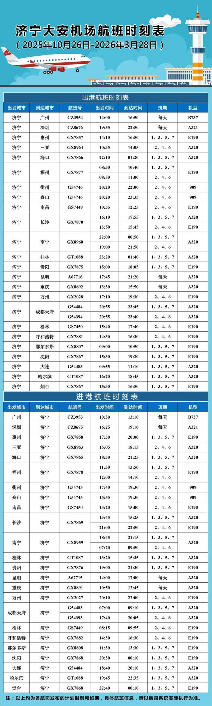 1.以上为航司发布的计划时刻和班期,具体航班信息,请以航司系统实际执行为准;