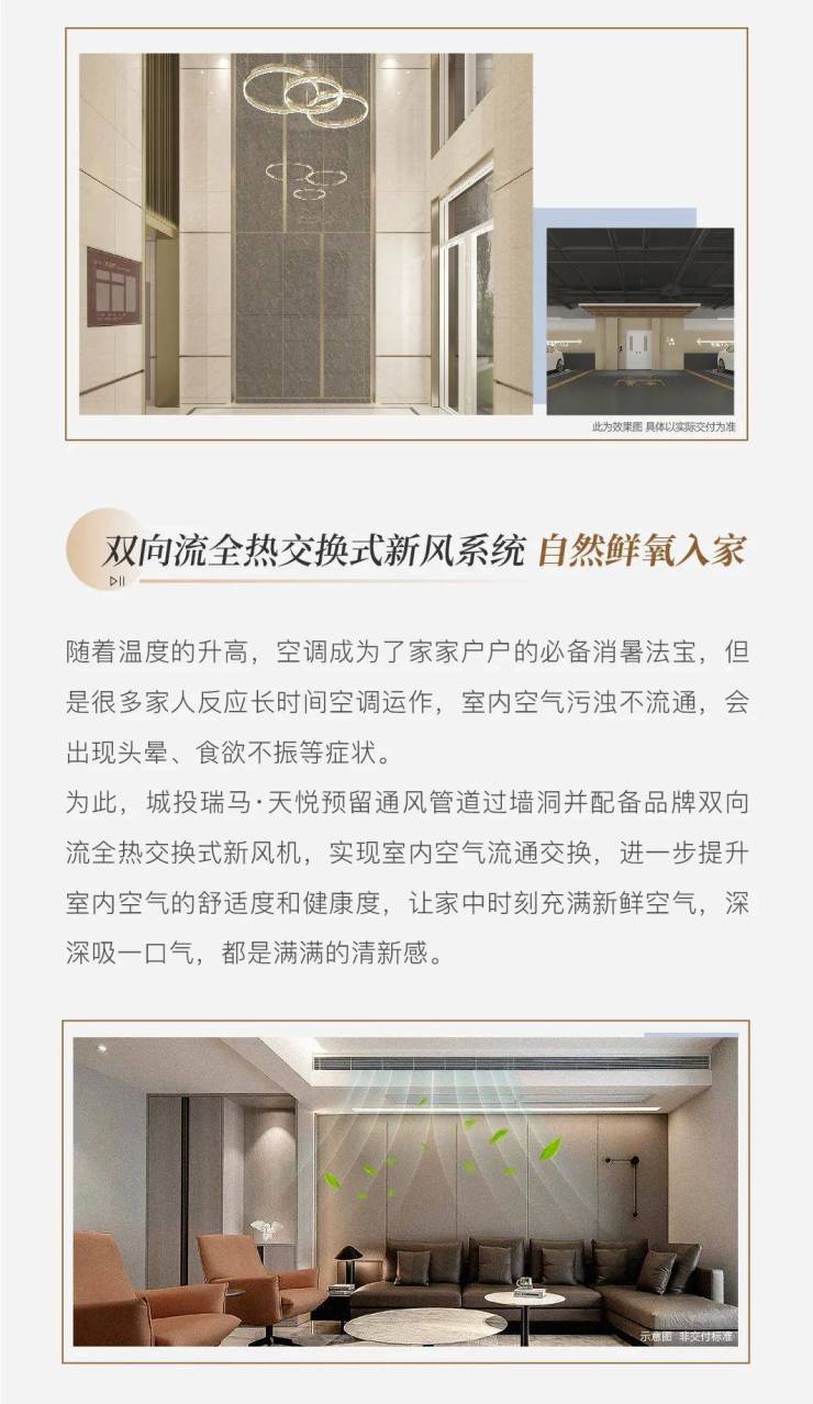 城投瑞马·天悦预留通风管道过墙洞并配备品牌双向流全热交换式新风机,实现室内空气流通交换,进一步提升室内空气的舒适度和健康度,让家中时刻充满新鲜空气,深深吸一口气,都是满满的清新感。