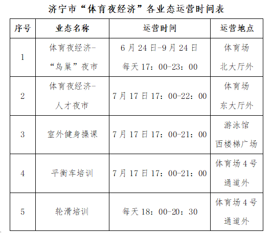 附:济宁市“体育夜经济”各业态运营时间表