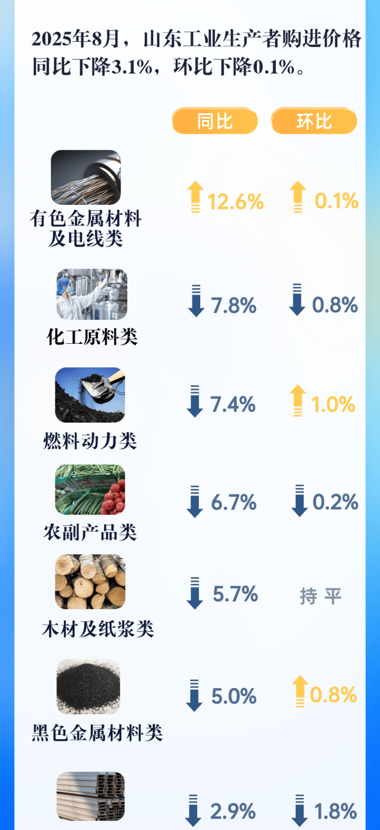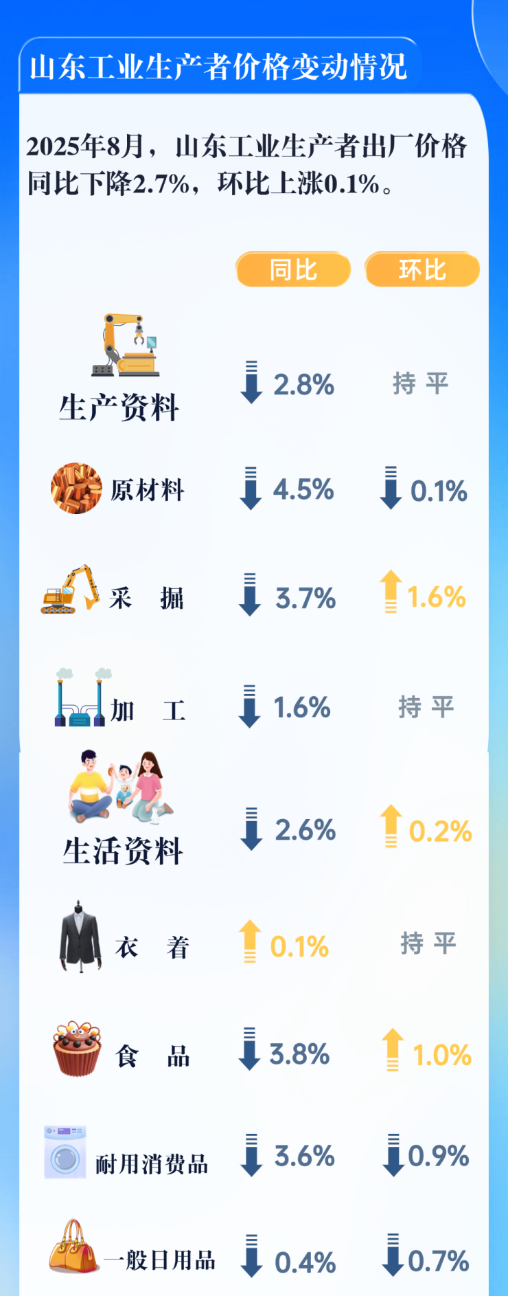 2025年8月,山东居民消费价格指数(CPI)同比下降0.7%,环比上涨0.1%。