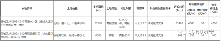 总起始价约2.5亿!济宁城区2宗土地挂牌出让