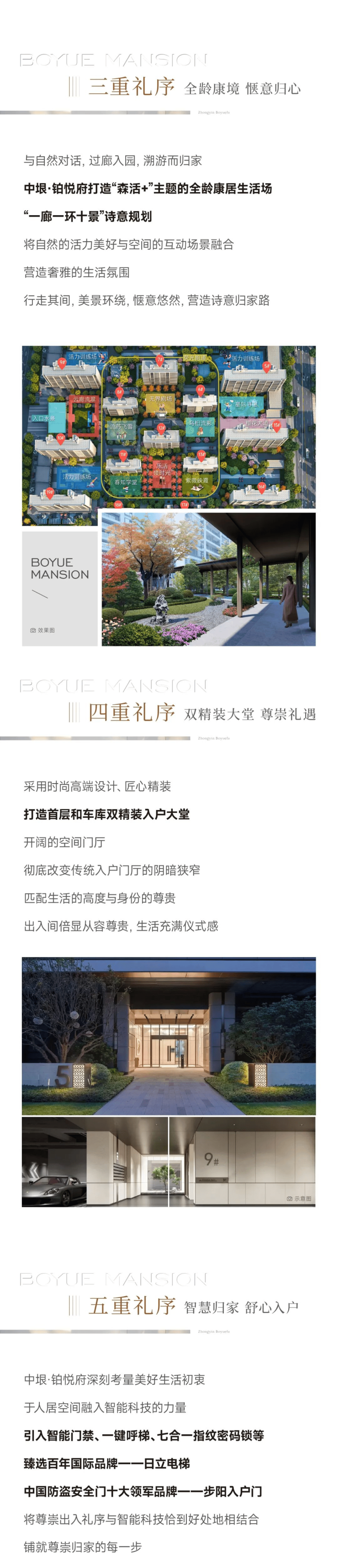 品质生活需要仪式感,归家亦是如此。中垠·铂悦府以“礼”为制将人文礼序与居住理念相结合,通过建筑与园林的精心打磨,匠心打造五重归家礼序。让您洗尽一身疲倦,归家的每一步皆充满仪式感。
