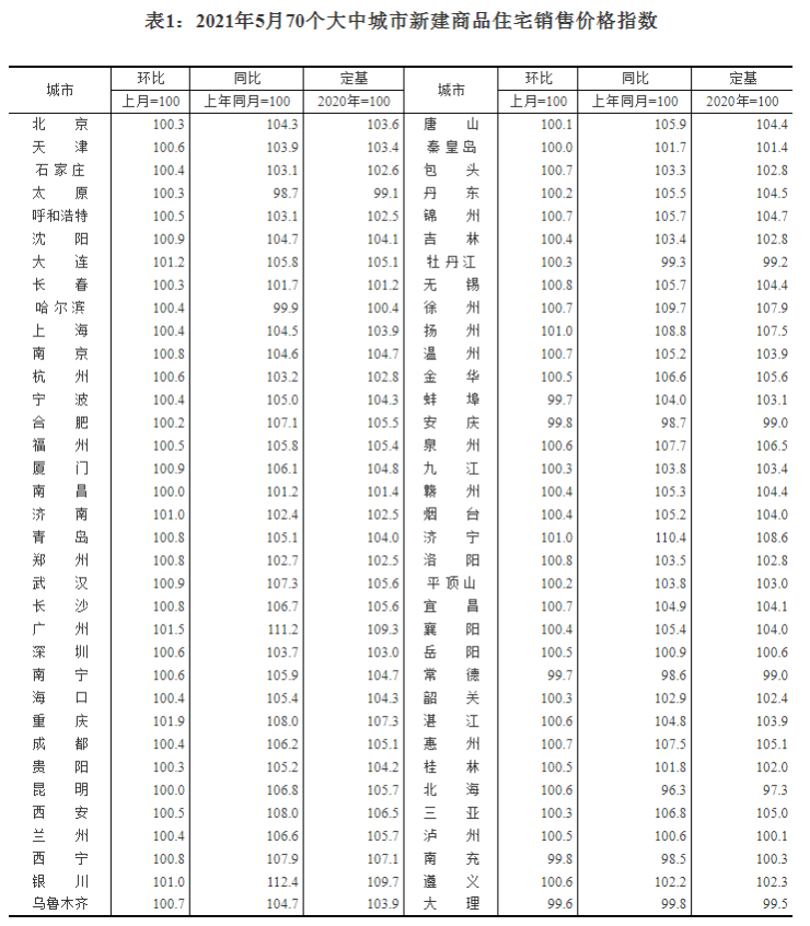 ——国家统计局城市司首席统计师绳国庆解读2021年5月份商品住宅销售价格变动情况统计数据