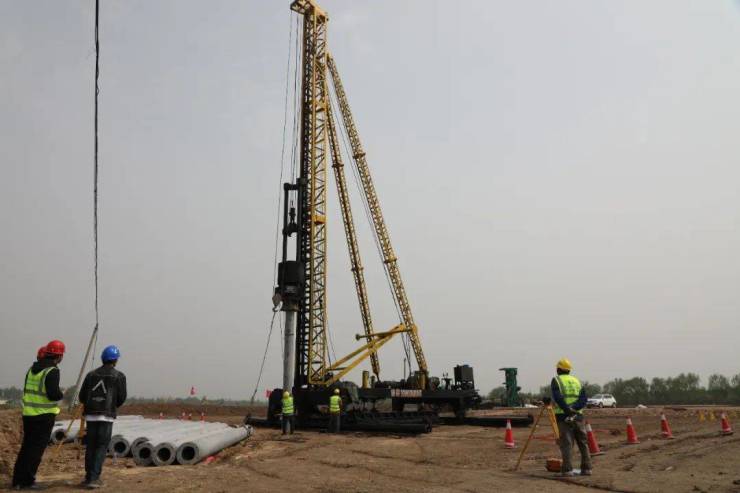 在项目施工现场记者看到,设备林立、车辆穿梭,挖掘机、钻机轰鸣交织,施工人员紧张有序、干劲十足,工地一派热火朝天的繁忙景象。