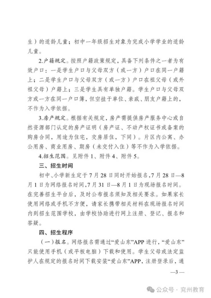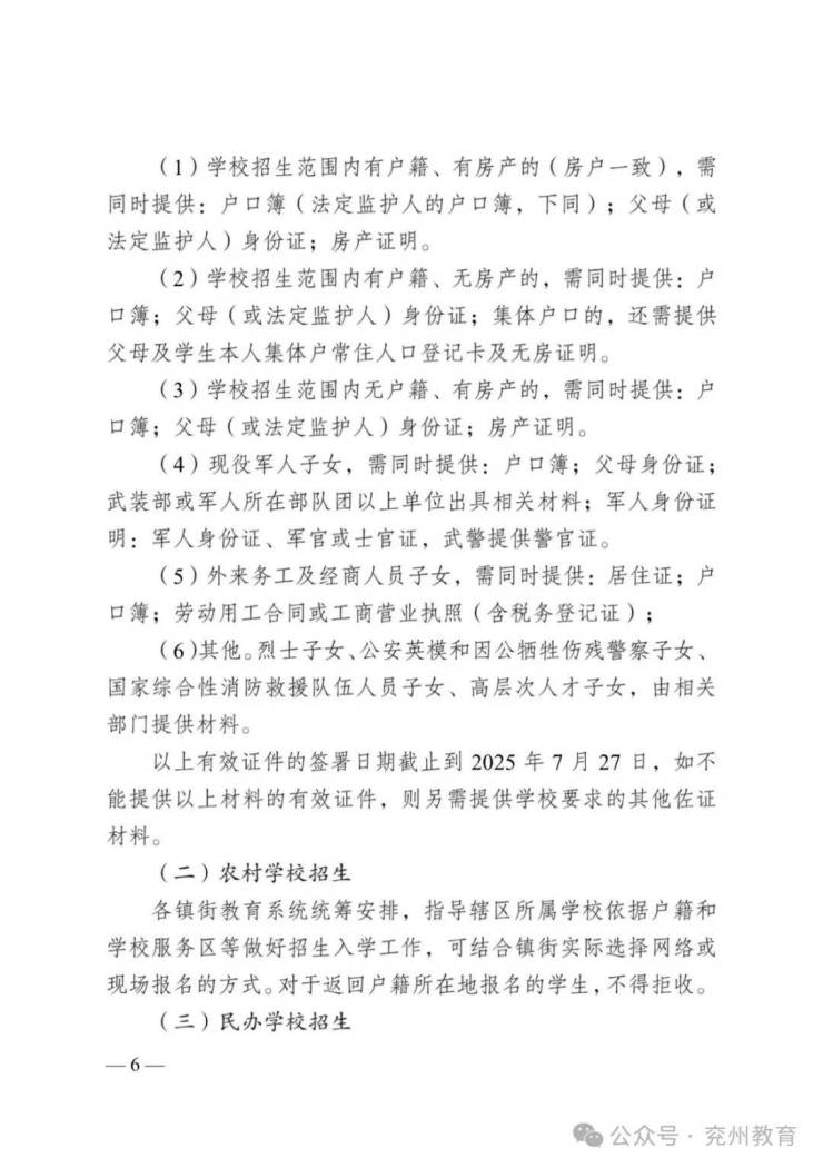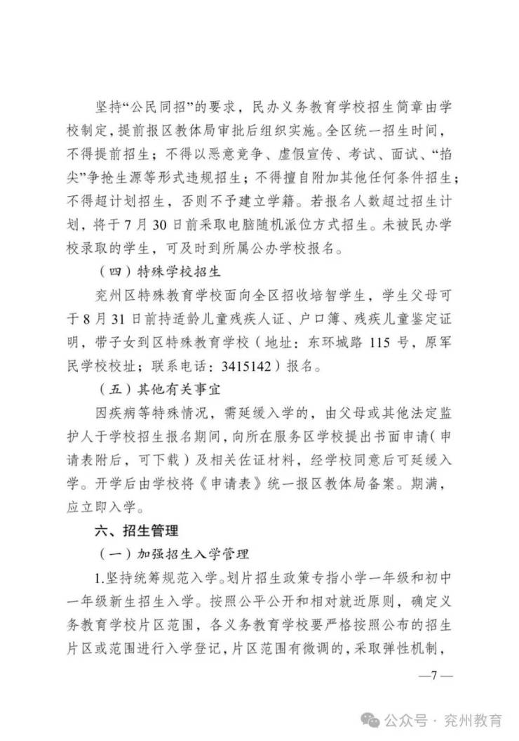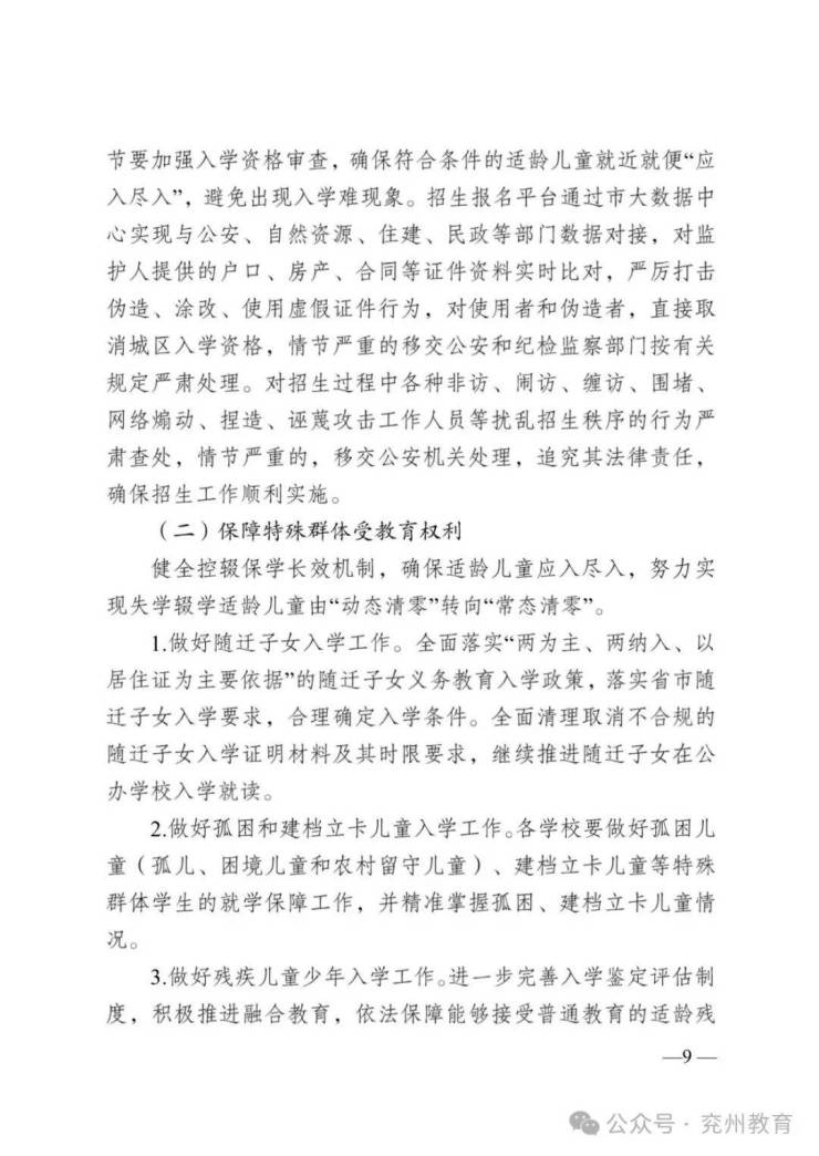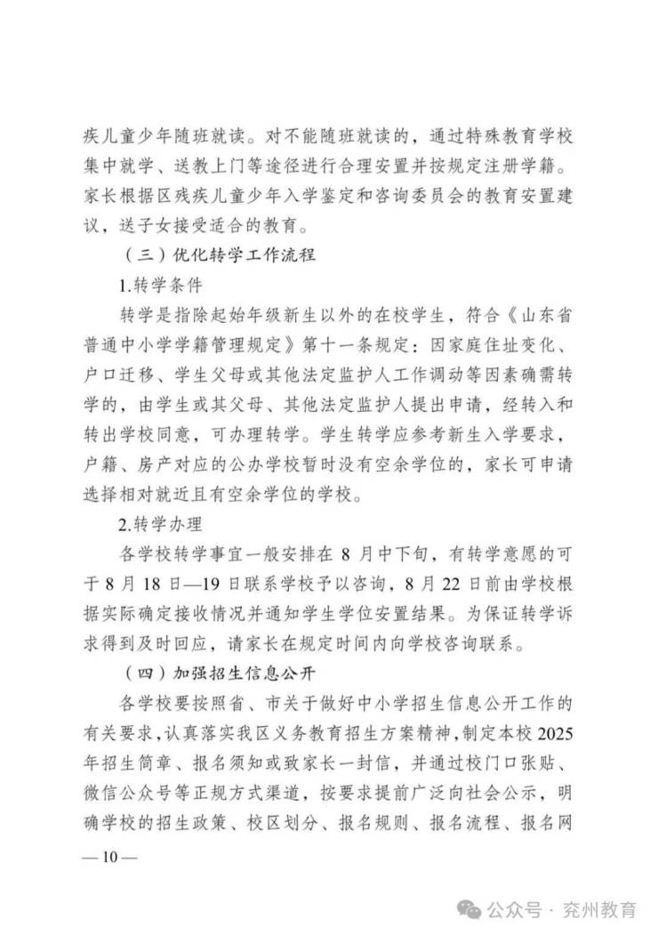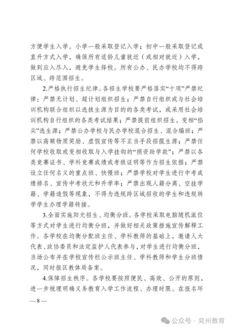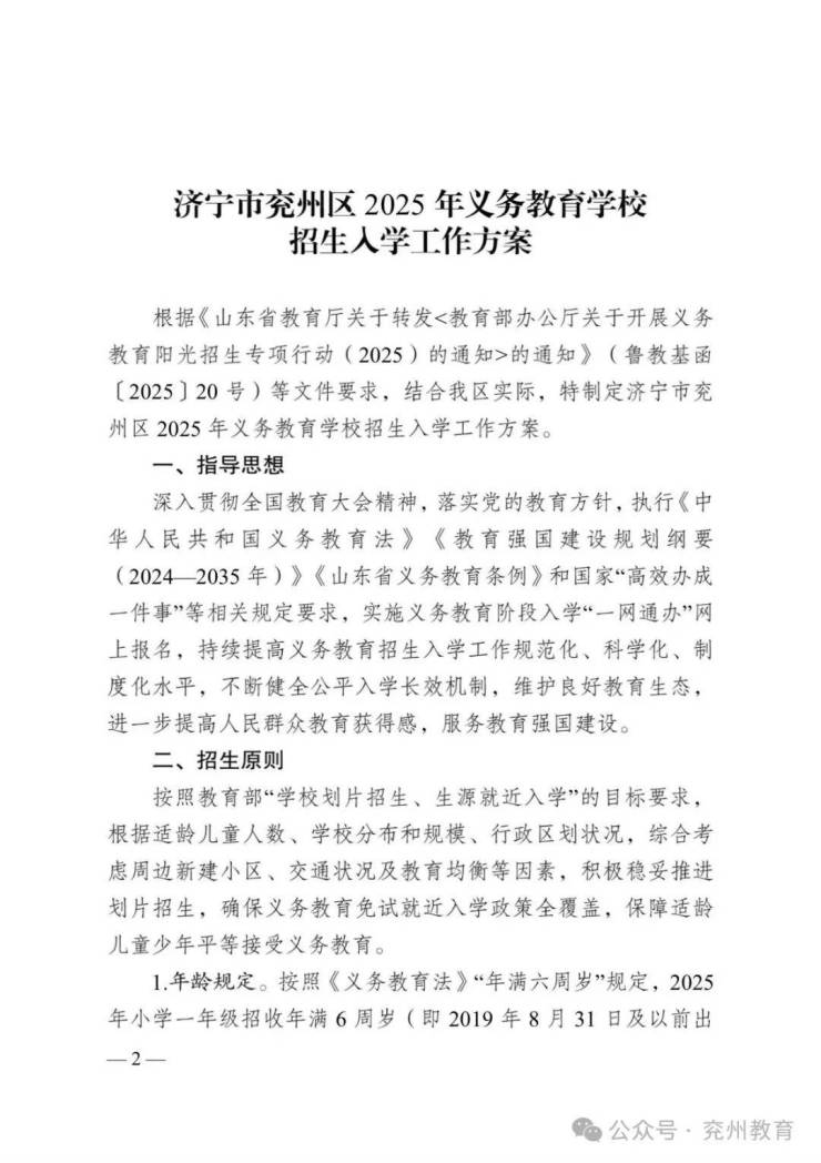 根据《山东省教育厅关于转发<教育部办公厅关于开展义务教育阳光招生专项行动(2025)的通知>的通知》(鲁教基函〔2025]20号)等文件要求,结合兖州区实际,特制定济宁市兖州区2025年义务教育学校招生入学工作方案。
