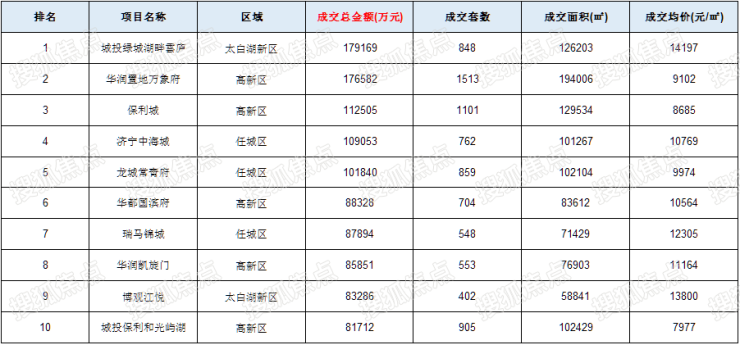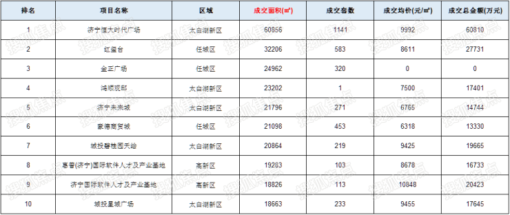 2021年济宁市房地产市场住宅、商业项目TOP10盘点