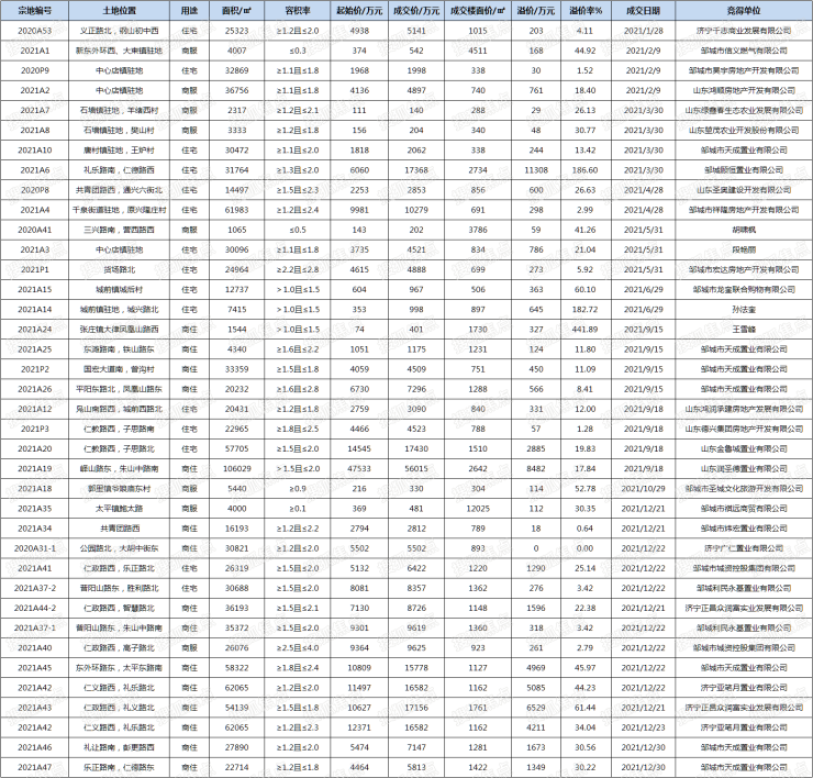 【邹城2021A24】宗地起始价74万,由王雪峰以401万元成功竞得,溢价率高达441.89%;