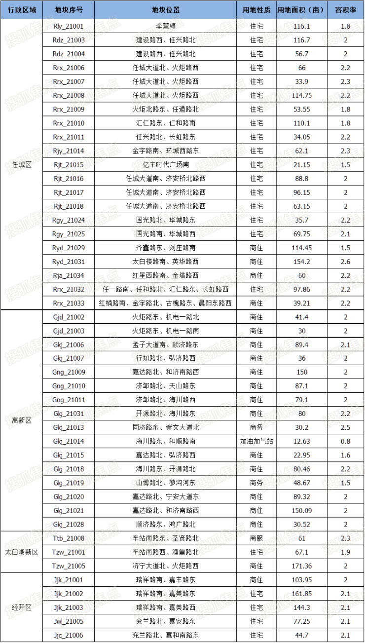 任城区:12宗,面积694242平方米,约合1041.36亩,占总面积的4.36%;