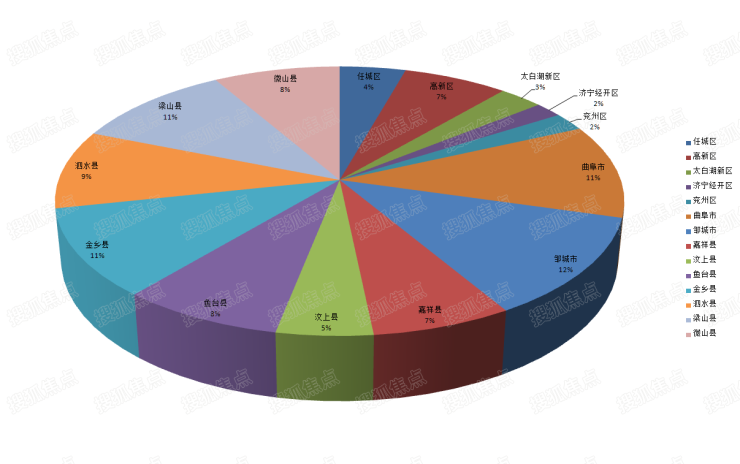 济宁经开区:5宗,面积242992平方米,约合364.49亩,占总面积的1.82%;
