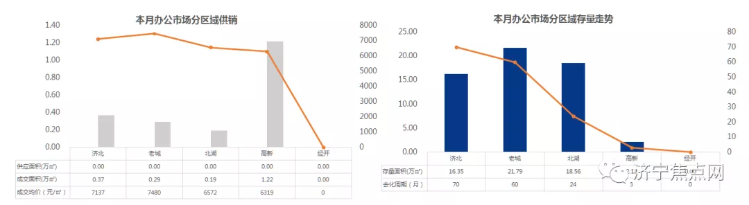 本月办公暂无供应;从成交方面上看,惠普(济宁)国际软件人才及产业基地项目以销售面积0.82万㎡,成交金额0.58亿元,并列较高,位居双排行榜排名前列。