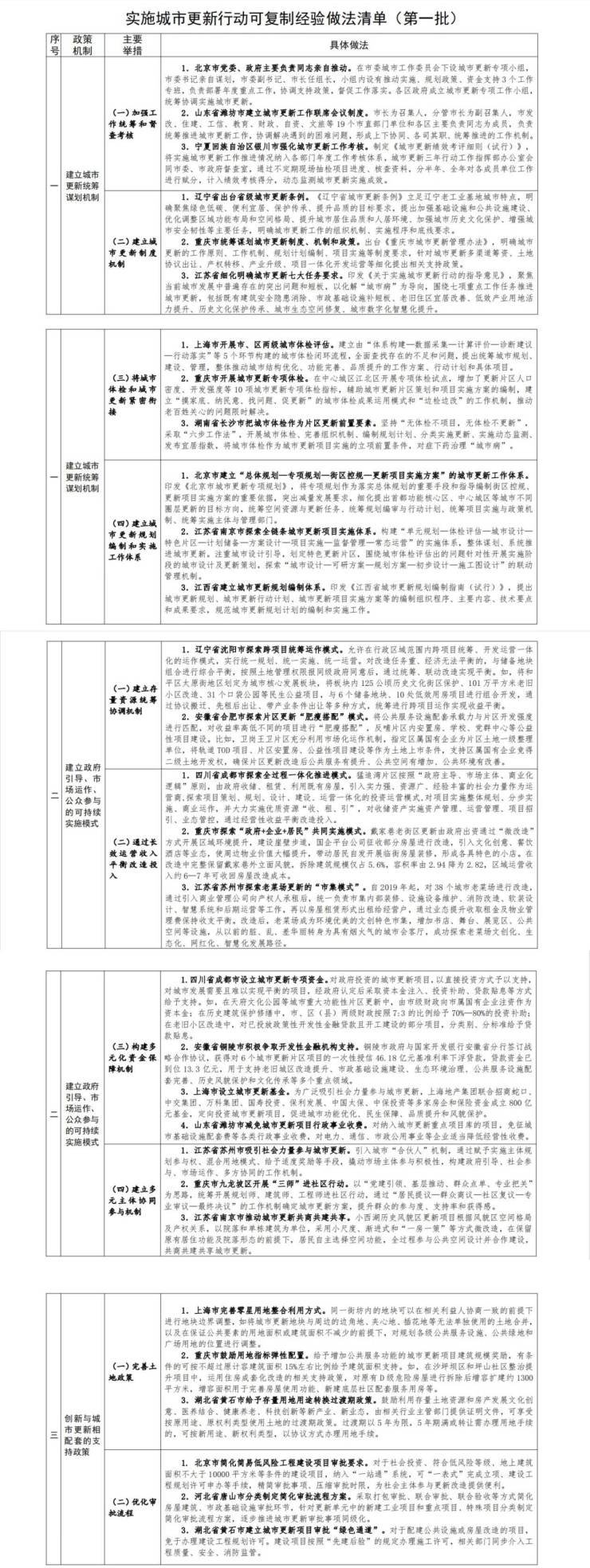 实施城市更新行动可复制经验做法清单(第一批)印发