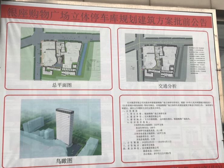 近日,搜狐焦点小编获悉,济宁太白中路的银座购物广场准备建设一处立体停车库,现在规划已经出炉,公示完毕之后就可以审批了。