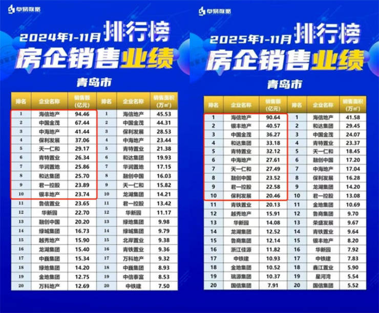 2025 年1-11月,青特置业跻身青岛房企前五,且成为TOP10中唯一正增长企业,增长率达22%。10月销售业绩 荣登青岛主城区商品住宅套数、面积双料冠军;11月青特置业以的亮眼战绩强势登顶青岛主城区销售套面金 “三冠王”,标志着青特已从“区域强者”进阶为“全市引领者”,用实打实的数据印证品牌深耕实力。真正展现出“一个项目带动一个区域”的势能,足见青特在青岛的楼市地位和“锋利”程度。