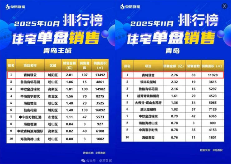 2025年青特璟誉6月24日拿地到11月15日首开,首开售罄!11月以2.76亿网签额斩获青岛市“套数、面积、金额”三冠王。