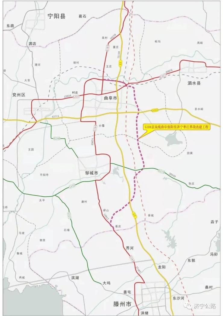 G104京岚线曲阜张阳至济宁枣庄界段改建是山东省“十四五”综合交通运输发展规划的重点项目。项目起自曲阜张阳G104与G327交叉口,止于G104京岚线济宁枣庄界,全长约57.3公里(其中新建段约40.4公里,改建段约16.9公里),采用双向六车道一级公路标准建设,总投资约39亿元,是迄今为止济宁市获省发改委立项的技术标准最高、建设规模和投资额最大的普通国省道建设项目。项目的规划实施,将在曲阜市、邹城市东部新增一条南北向交通大通道,有效串联两市丰富旅游资源,对于分流老城区交通流量,缓解交通压力,改善行车条件,提升通行能力,优化区域路网布局,扩展城市发展空间,促进区域经济社会发展具有重要意义。