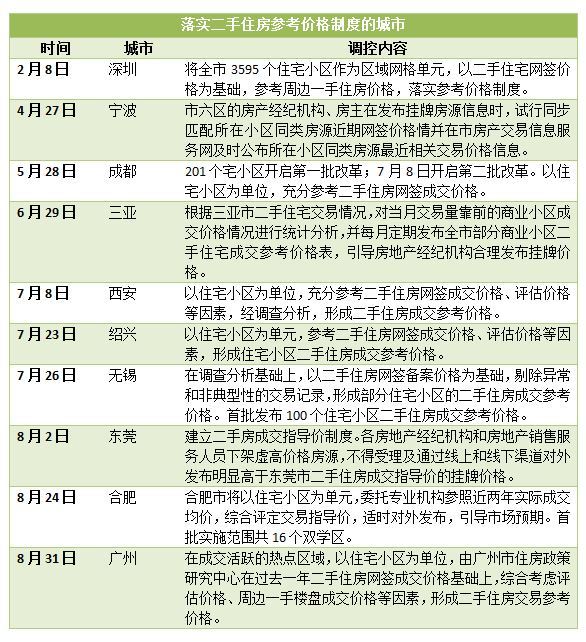 十城已推行二手房成交参考价,过半8月挂牌价现环比下降
