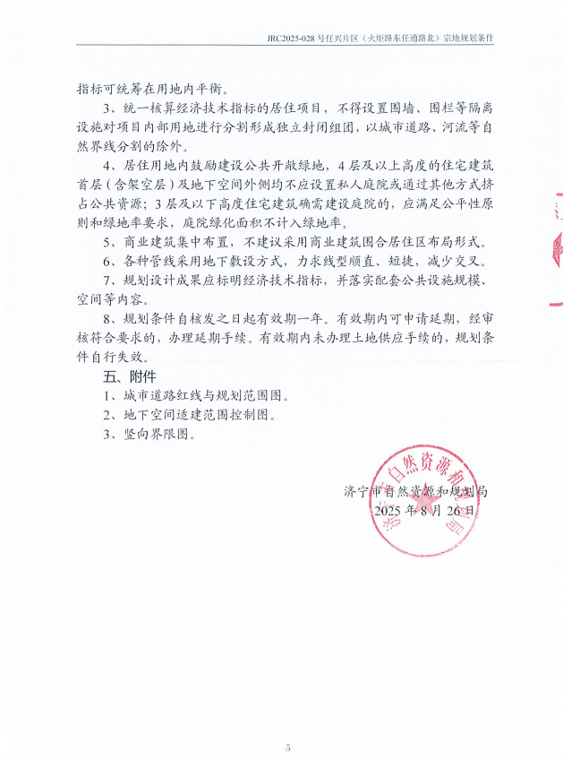 地块一:任城区JRC2025-028号任兴片区(火炬路东任通路北)地块【济宁济北新城城市建设发展有限公司竞得】