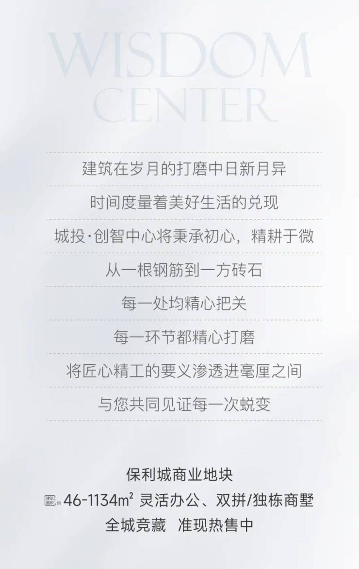 建筑在岁月的打磨中日新月异,时间度量着美好生活的兑现。城投·创智中心将秉承初心,精耕于微,从一根钢筋到一方砖石,每一处均精心把关,每一个环节都精心打磨。将匠心精工的要义渗透进毫厘之间,与您共同见证每一次蜕变。