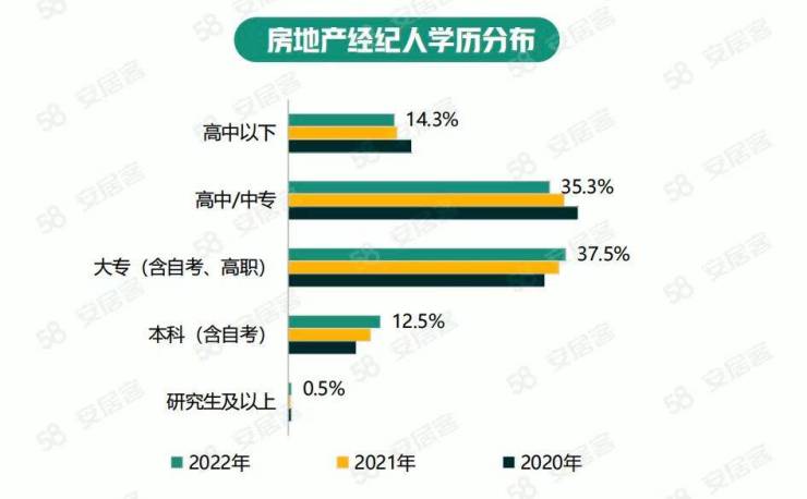 房产经纪人生存报告:高学历占比逐年提升,本科以上占13%