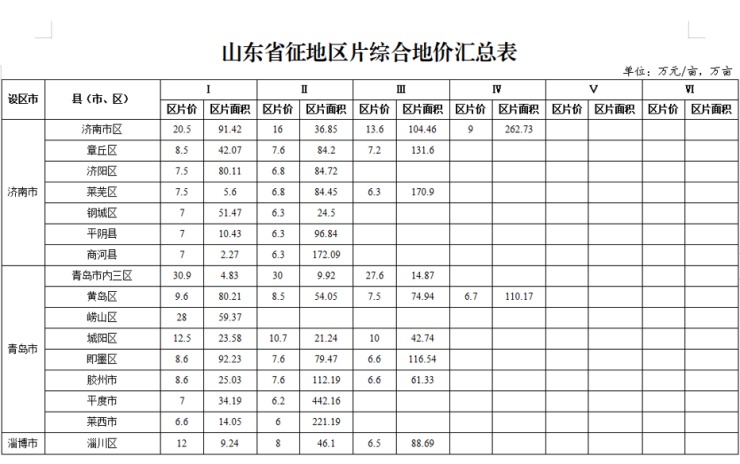 最高30.9万元/亩!山东省最新征地区片综合地价发布