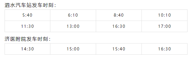 停靠站点:泗水汽车站、曲阜汽车站、兖州汽车站、济宁技师学院、人民医院东院区、济医附院