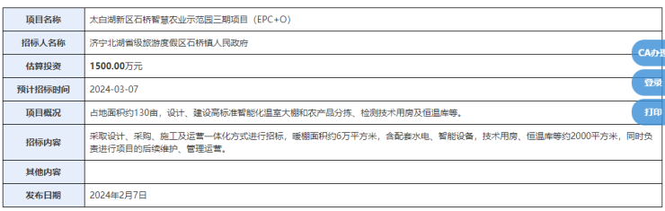 估算投资1500万!济宁市太白湖新区石桥智慧农业示范园三期招标