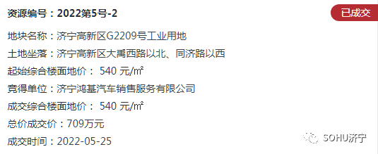 地块二:济宁高新区G2209号工业用地【济宁鸿基汽车销售服务有限公司拍得】