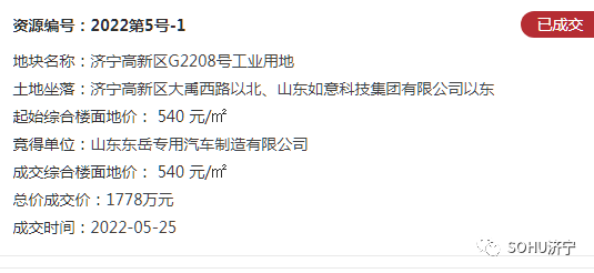 地块一:济宁高新区G2208号工业用地【山东东岳专用汽车制造有限公司拍得】