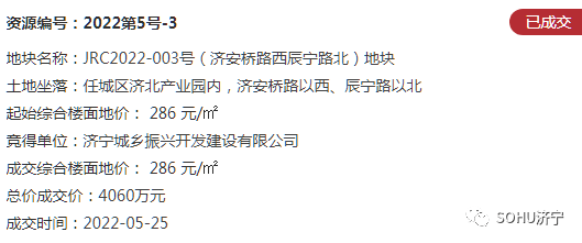 地块三:JRC2022-003号(济安桥路西辰宁路北)地块【济宁城乡振兴开发建设有限公司拍得】