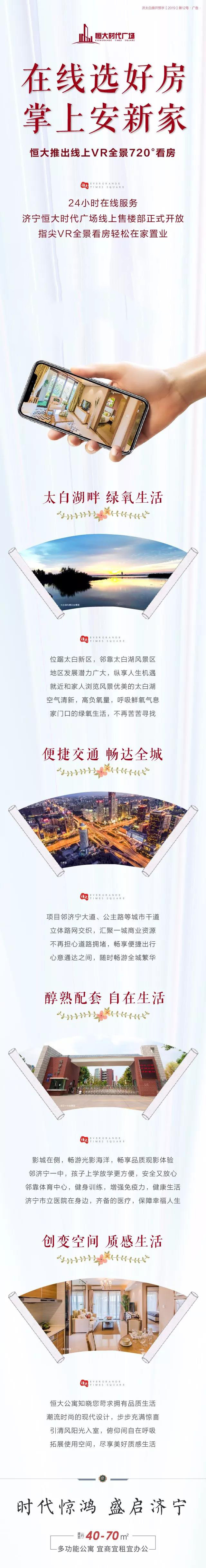 24小时在线服务,济宁恒大时代广场线上售楼部正式开放,指尖VR全景看房轻松在家置业。