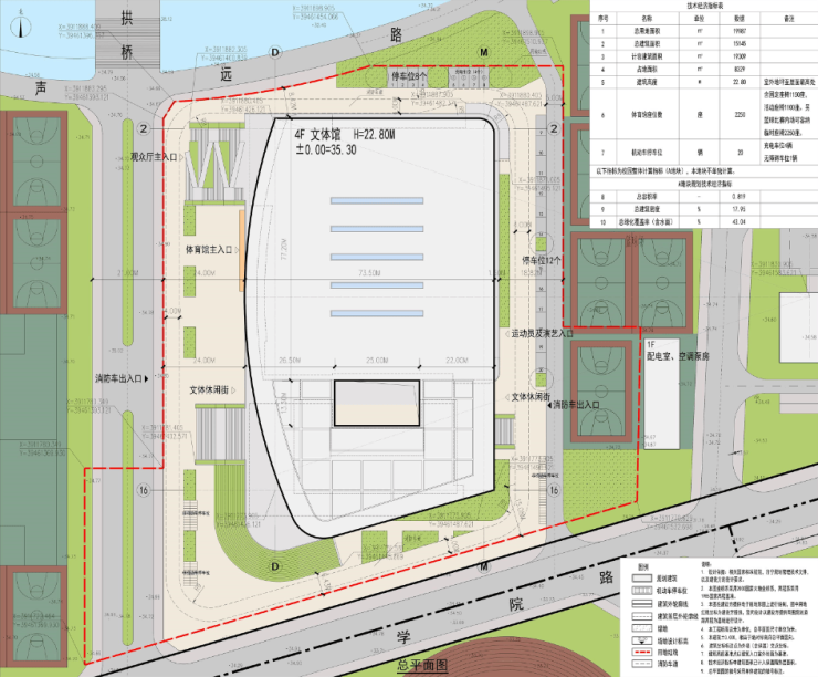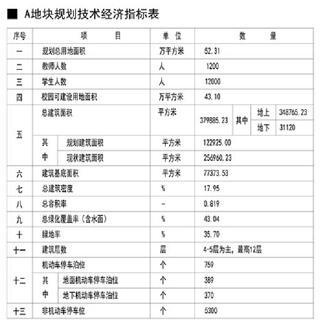 调整内容:(1)建筑密度由18.04%调整为17.95%,容积率由0.812调整为0.819,总绿化覆盖率(含水面)由42.56%调整为43.04%,基底面积由77723平方米调整为77373.53平方米,总建筑面积由380740.23平方米调整为379885.23平方米。(2)体育馆+游泳馆更名为文体馆,地上建筑面积由16000平方米调整为15145平方米,建筑层数由2层调整为4层,建筑高度由22.45米调整为22.80米。(3)优化文体馆东侧道路,重新布置机动车停车位位置,设置于文体馆北侧和东侧。