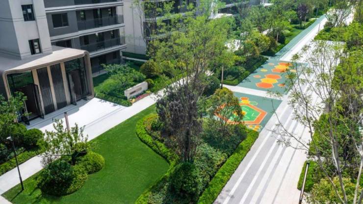 江悦实景现房,浓缩了时代对宜居住区的理解,四季遴选的绿植草木,与精致水景、草坪、铺装道路有机结合,呈现出“自然、隽永、精巧、雅致”的居住氛围,C大调建筑的极简之美,与园林景观相映成趣。