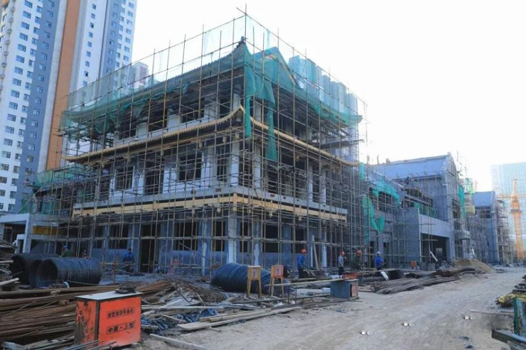 鸿顺运河金街项目位于太白湖新区运河路,目前1、2、3、9号院落正在进行外墙和木结构檐口装修,4、5、6、7、8号院落外墙及屋面顶棚工程已临近收尾,月底将开始室内装修,预计明年5月份开始招商,10月份正式投入运营。