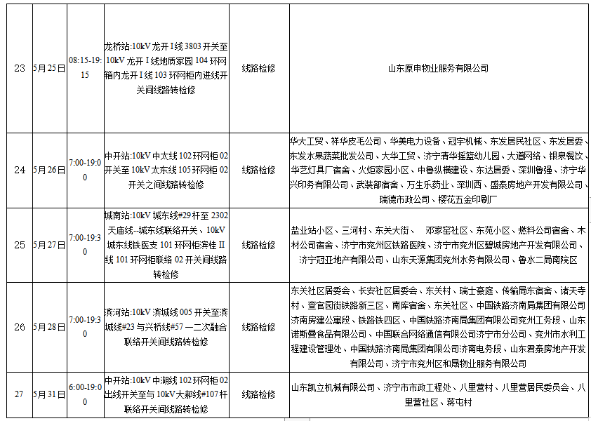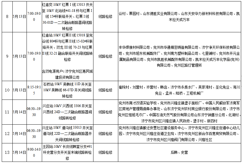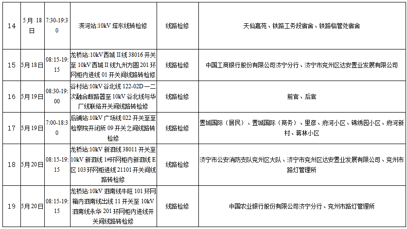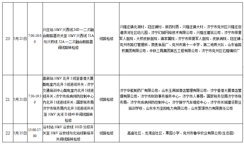 济宁5月份停电计划公布,涉及多个区域,具体如下: