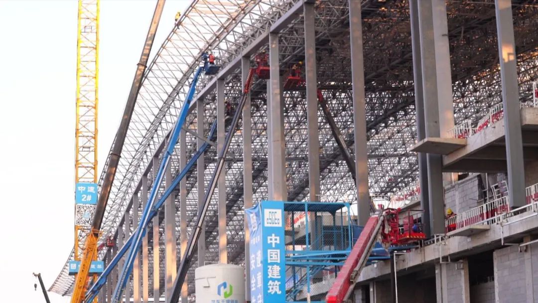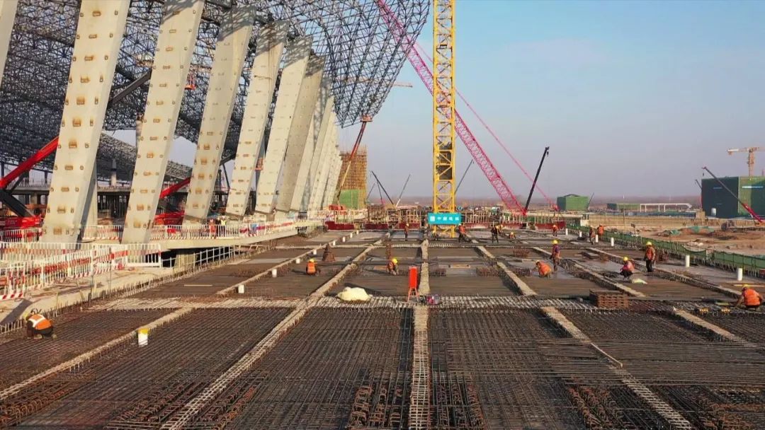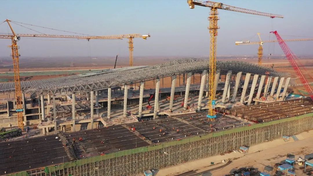 目前,航站楼土建结构和钢结构工程施工完成,主体已完工,正在进行二次结构、幕墙和屋面施工。场外供水工程、燃气工程已完工,西浦路拓宽北延工程已通车并高标准进行绿化亮化。