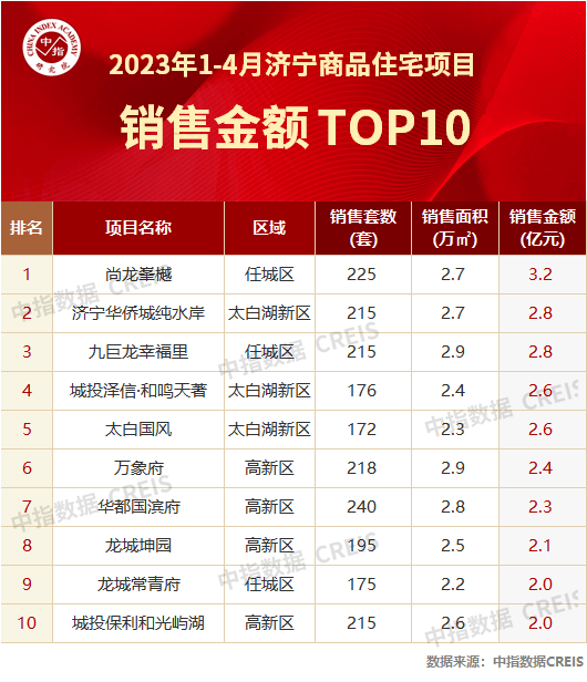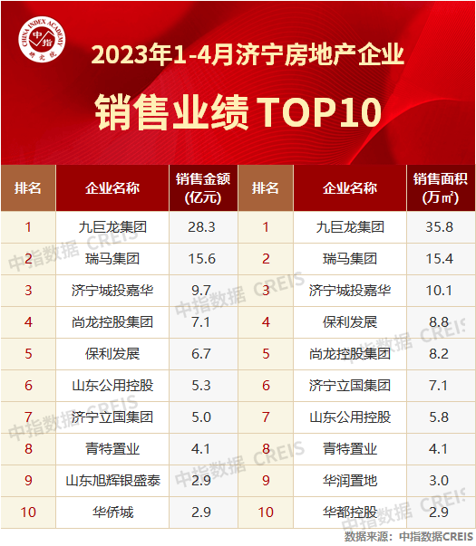 2023年1-4月济宁房地产企业销售业绩排名TOP10火热出炉