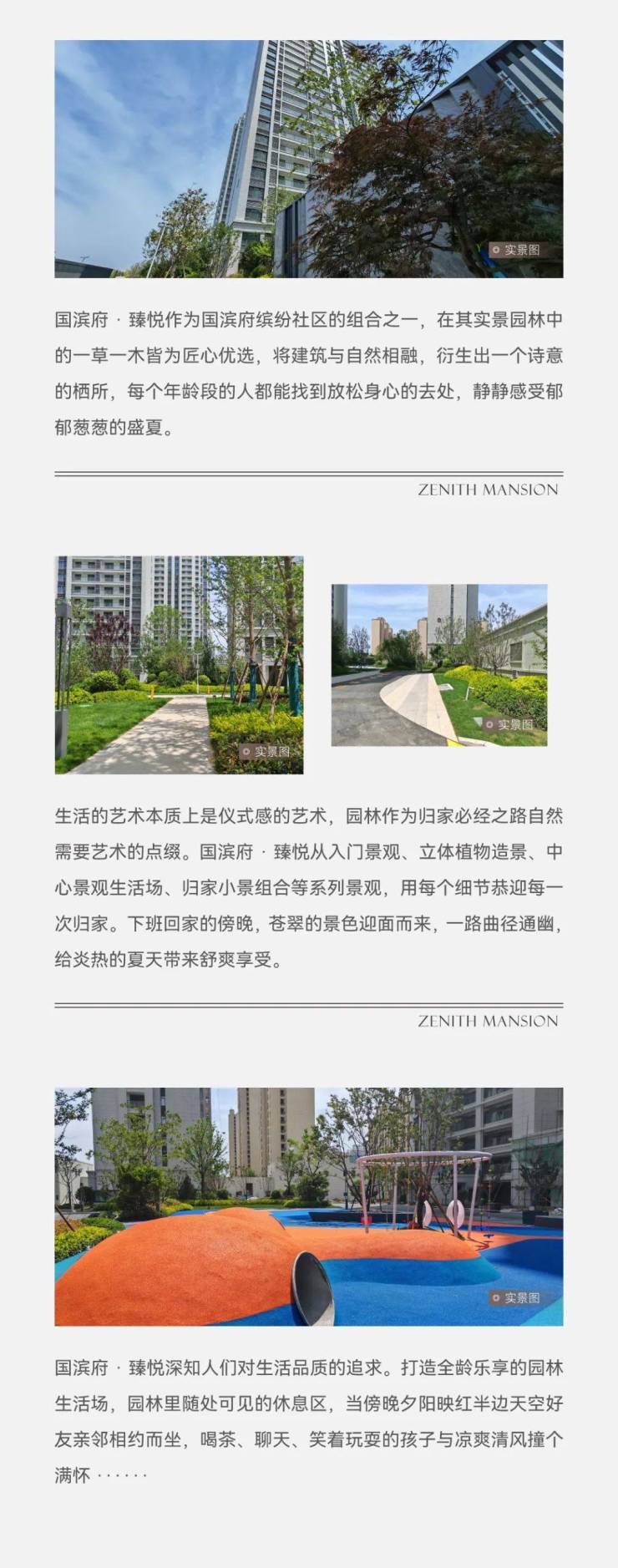 华都国滨府·臻悦作为国滨府缤纷社区的组合之一,在其实景园林中的一草一木皆为匠心优选,将建筑与自然相融,衍生出一个诗意的栖所,每个年龄段的人都能找到放松身心的去处,静静感受郁郁葱葱的盛夏。