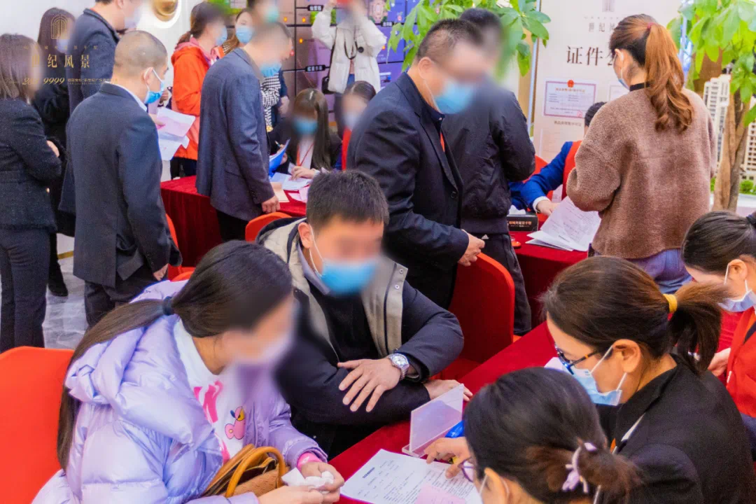 开盘现场人声鼎沸,座无虚席,不少准业主在开盘前就已早早来到现场等候。每一位客户都在翘首以盼,希望自己能选到心仪的房子,焦急与喜悦的心情溢于言表。