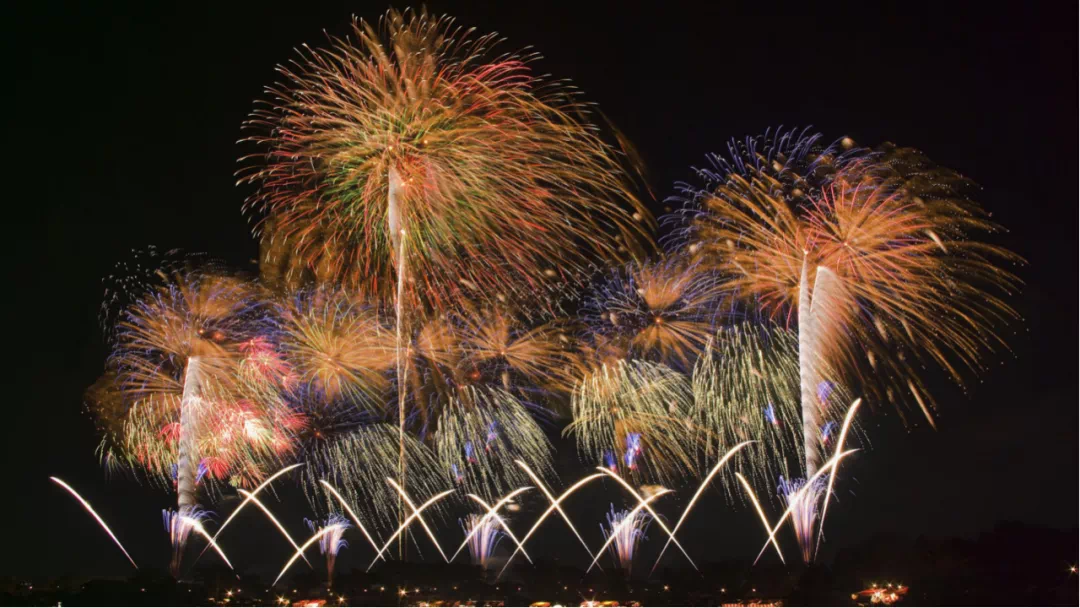 金灿灿的花火布满天空,满满的自豪感