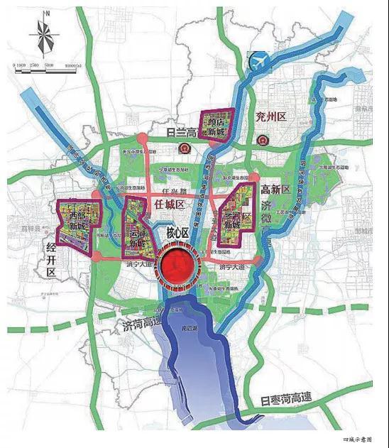 《济宁中心城区近期重点建设任务(2018-2021 年)》明确表示,发展打造“四城驱动”是未来几年济宁中心城区的重点建设任务。从区位上看,其中运河新城、西部西城,两城都位于济宁城市西部。济宁西城发展未来可期。