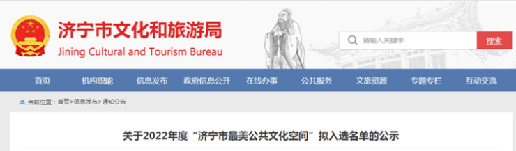 为推动城乡公共文化空间高质量发展,引领城市、乡村文化空间建设,优化城乡文化资源配置,以高品质的公共文化服务满足人民群众的文化需求,根据省文旅厅有关要求,我市组织开展了2022年度“济宁市最美公共文化空间”评选活动,经申报、筛选、推荐、评审等环节,拟确定曲阜市鲁源公共文化空间等20个空间为2022年度“济宁市最美公共文化空间”,现予以公示(名单附后)。
