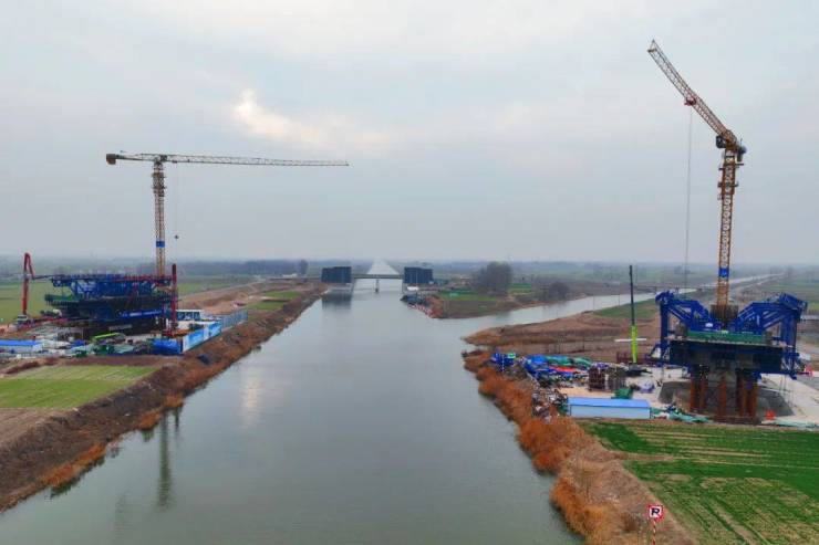 与此同时,济商高速(济宁段)项目另一个控制性工程也传来捷报。随着最后一片钢桁梁顺利安装完成,蔡河大桥钢桁梁结构全部安装完成,标志着项目建设取得新的重大进展。蔡河大桥全长295米,主桥上部钢桁梁总长108米,横桥向布置三片桁架,桥面系采用钢筋混凝土桥面结构。