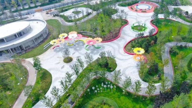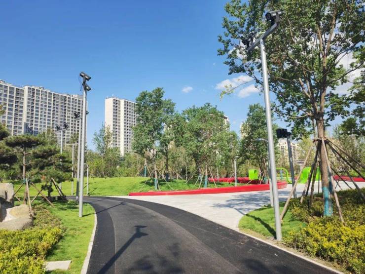 共清理建筑垃圾及土方3.5万方,种植乔灌木2960棵,修砌园路2900米,铺装广场1.07万平方米,种植草皮、花卉共计6.29万平方米;建设服务建筑3000平方米,同时配备了功能齐全的儿童游乐设施,真正实现了“推窗见绿、出门入园”。