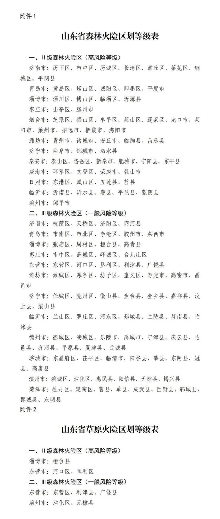 附件:1.山东省森林火险区划等级表