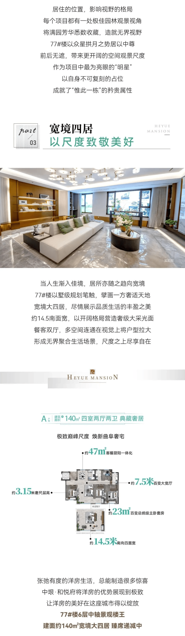 张弛有度的洋房生活,总能制造很多惊喜。中垠·和悦府将洋房的优势展现到极致,让洋房的美好在这座城市得以绽放。77#楼6层中轴景观楼王,建面约140㎡宽境大四居,臻席递减中!
