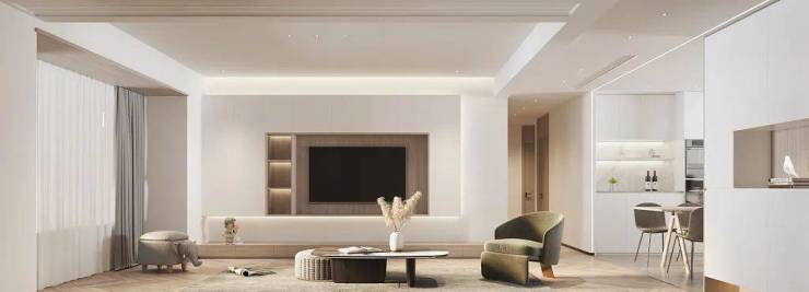 尺度感是大宅的必备修养,更要有人与空间的情感瑚绒,建面约135m²雲澜三房,饱含对家庭成员欢聚与情感空间的理解转译,整合出客厅、餐厅、厨房建面约37.76m²无界宽厅,使空间的通透性、互动性、可视性大幅升级。