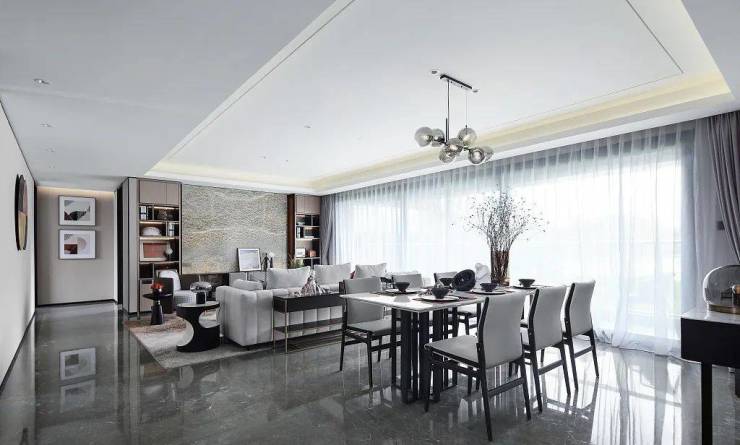 整个公共空间可以成为一个家庭完整的情感交流的场所,空间关系流畅且提高利用率,功能延伸自如,是谈笑风生的会客厅、是别开生面的聚会场、是孩子成长的欢乐园……居家待客皆从容,凝聚迎来送往的气派非凡。