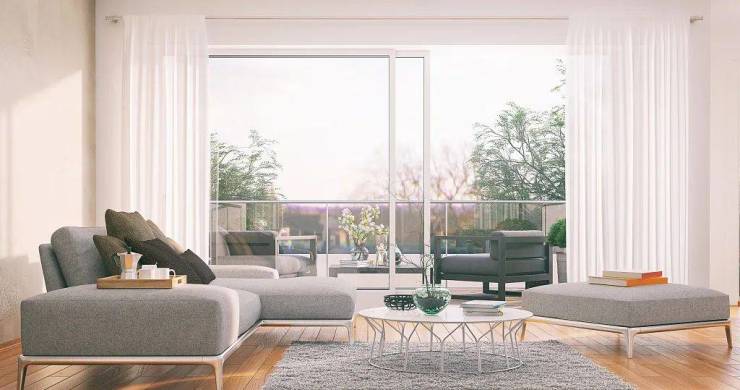 面宽约7.6m、进深约1.95m观景阔台直连客厅,相较于大多数1.5m的阳台进深,约0.45m的差距却能为生活带来更为纯粹的享受——近可赏景观园林,远可揽繁星皓月,又可轻松延伸生活空间,品茗、阅读、运动等多种志趣轻松容纳。