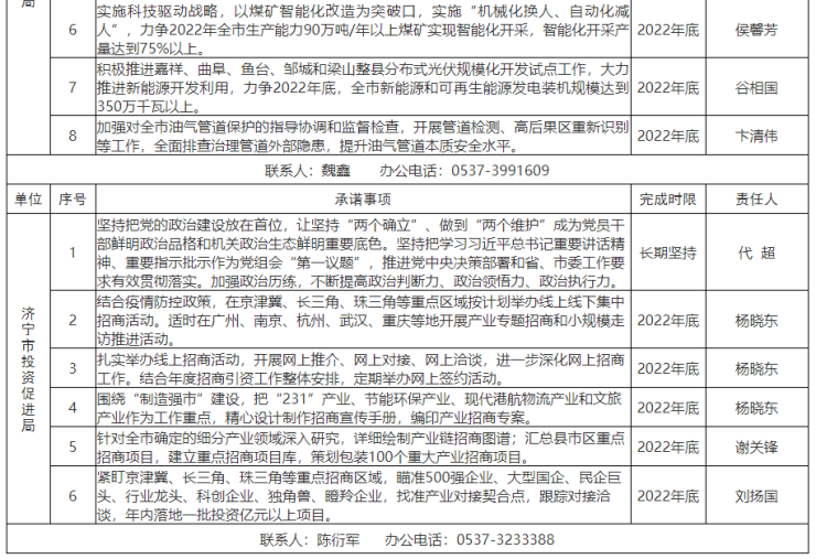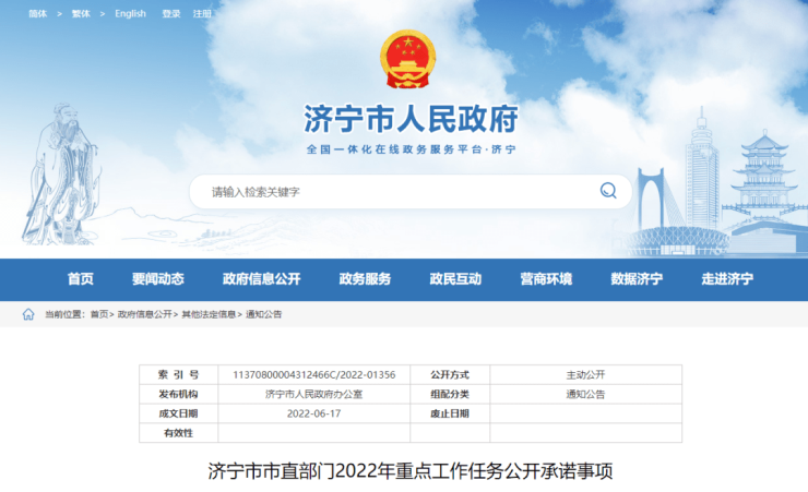搜狐网济宁小编相关渠道获悉:近日,济宁市公布市直部门2022年重点工作任务公开承诺事项,具体如下。